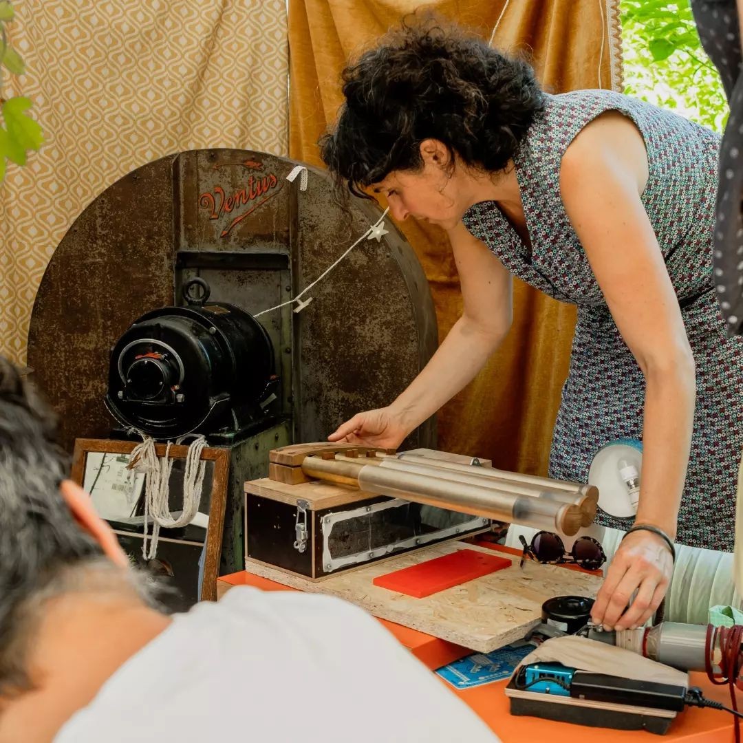 Léo Maurel est un luthier-inventeur assez génial, qui réinvente des instruments traditionnels comme la vielle à roue et l’orgue de barbarie. Accompagné par Estelle Galati, il propose des démonstrations et ateliers en petits groupes pour expérimenter ses instruments surprenants, notamment son nouveau Petit Vertige, instrument de musique inspiré de l’organetto, petit orgue portatif utilisé au Moyen Âge par les troubadours, mais aujourd’hui piloté par ordinateur.