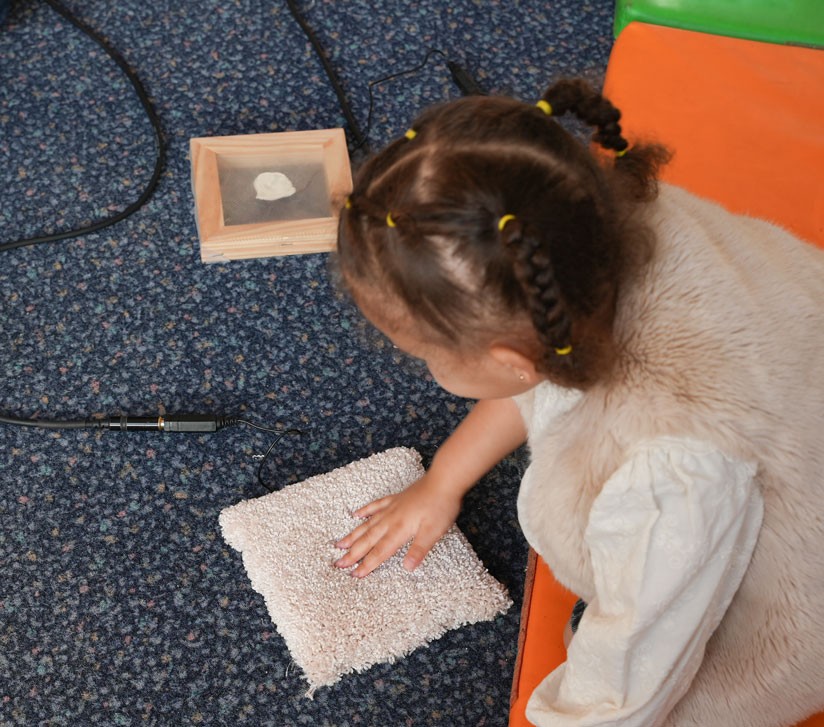 ici l’onde a travaillé avec la Bibliothèque Mansart et le Multi-accueil Voltaire pour produire un outil tactile de matières et d’objets manipulable par les enfants pour sonoriser l’écoute d’une lecture à haute voix.