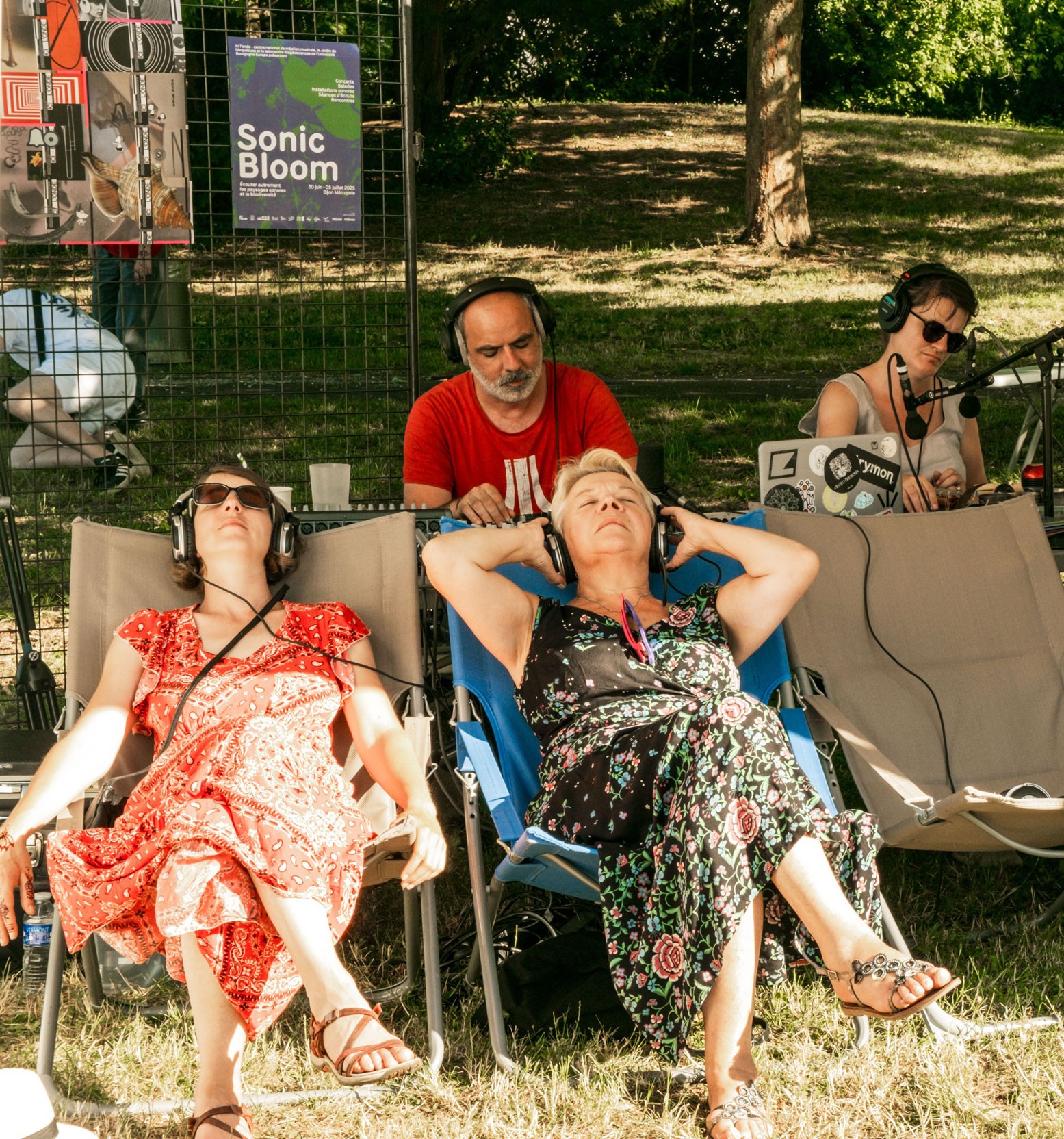 Sonic Bloom, c’est le rendez-vous estival d’ici l’onde, Centre National de Création Musicale à Dijon. Imaginé en 2021 comme une fête de fin de confinement, Sonic Bloom est devenu pour ici l’onde un laboratoire autour des questions de transformations écologiques. Après deux éditions sous la forme de tournées à vélo en Bourgogne en 2023 et 2024, en recherche de la sobriété carbone maximale – Sonic Bloom se consacre en 2025 aux questions de biodiversité, de respect et de mise en valeur du vivant dans les espaces de nature de la Métropole dijonnaise.