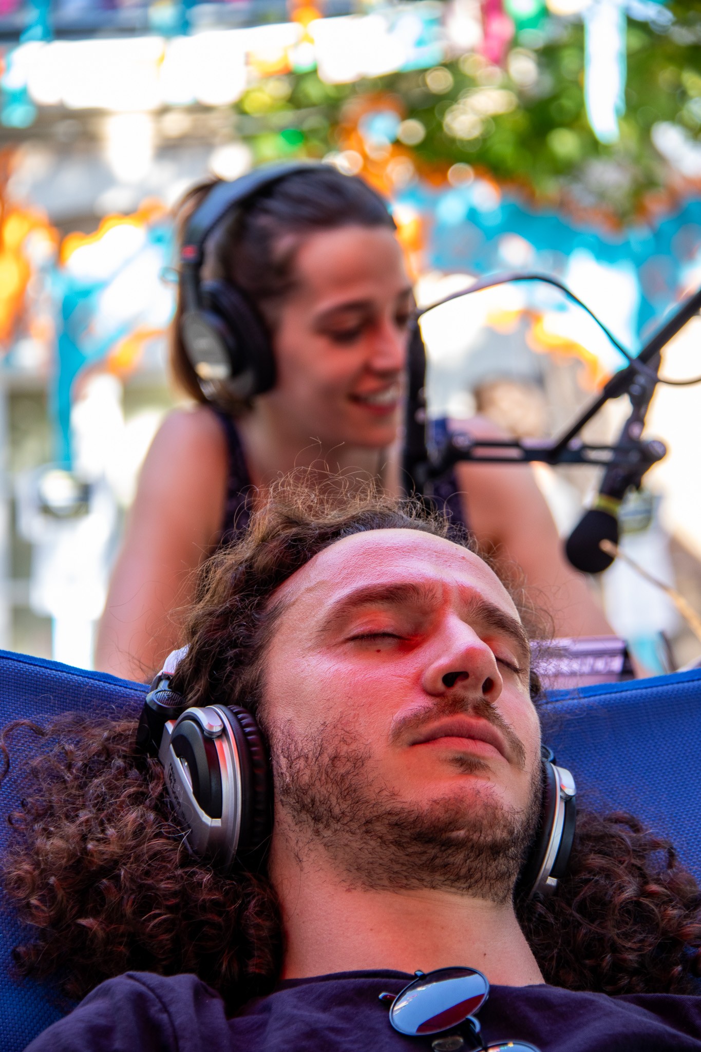 Les massages sonores d’ici l’onde, c’est une rencontre auditive entre l’ASMR et le concert individuel au casque. Redécouvrez votre environnement sonore confortablement installés sur des chaises longues. Laissez-vous embarquer par cette expérience sonore faite de bruits et de sons captés dans la nature, transformés ou créés en direct avec des instruments, des objets, des voix ou des effets.