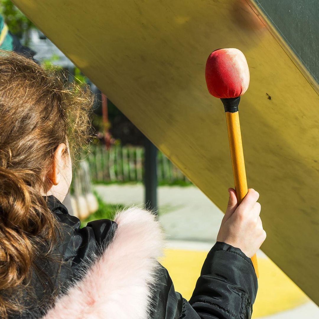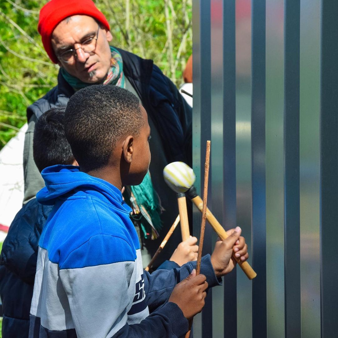 Le Groupe d’action sonore est un dispositif imaginé par le centre de création musicale ici l’onde et le musicien intervenant Jérôme Vion. Armé de mailloche et de baguettes, les participant·es parcourent l’espace urbain pour faire des percussions sur le mobilier environnant : poteaux, poubelles, panneaux, rembardes…