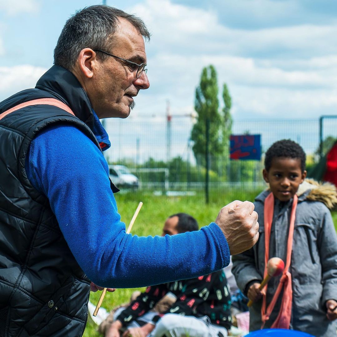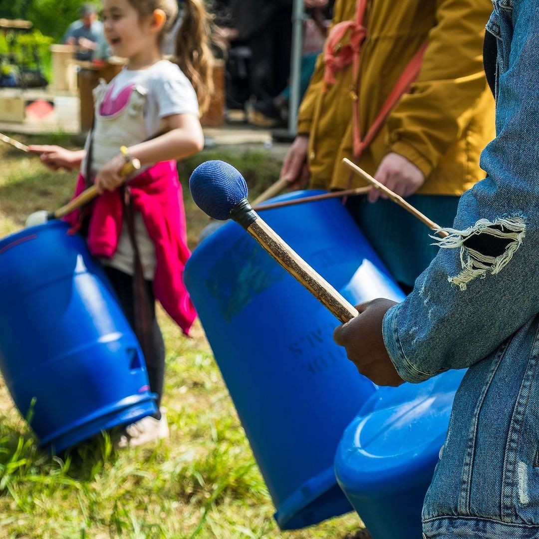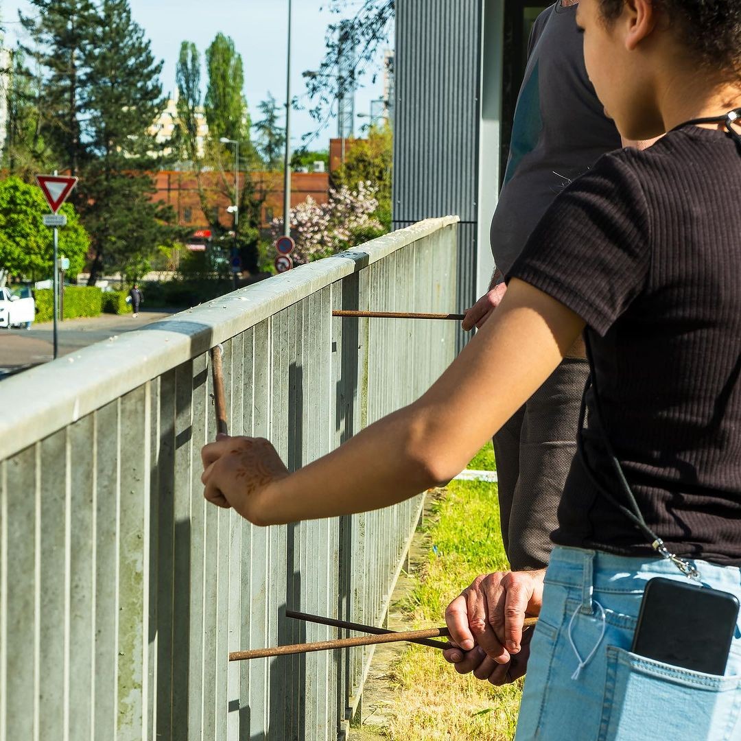 Dans le cadre du festival Jours de Fête à Fontaine d’Ouche, restitution des ateliers menés en amont, fabrication de mailloches et d’objets percussifs, initiation à la percussion sur mobilier urbain.