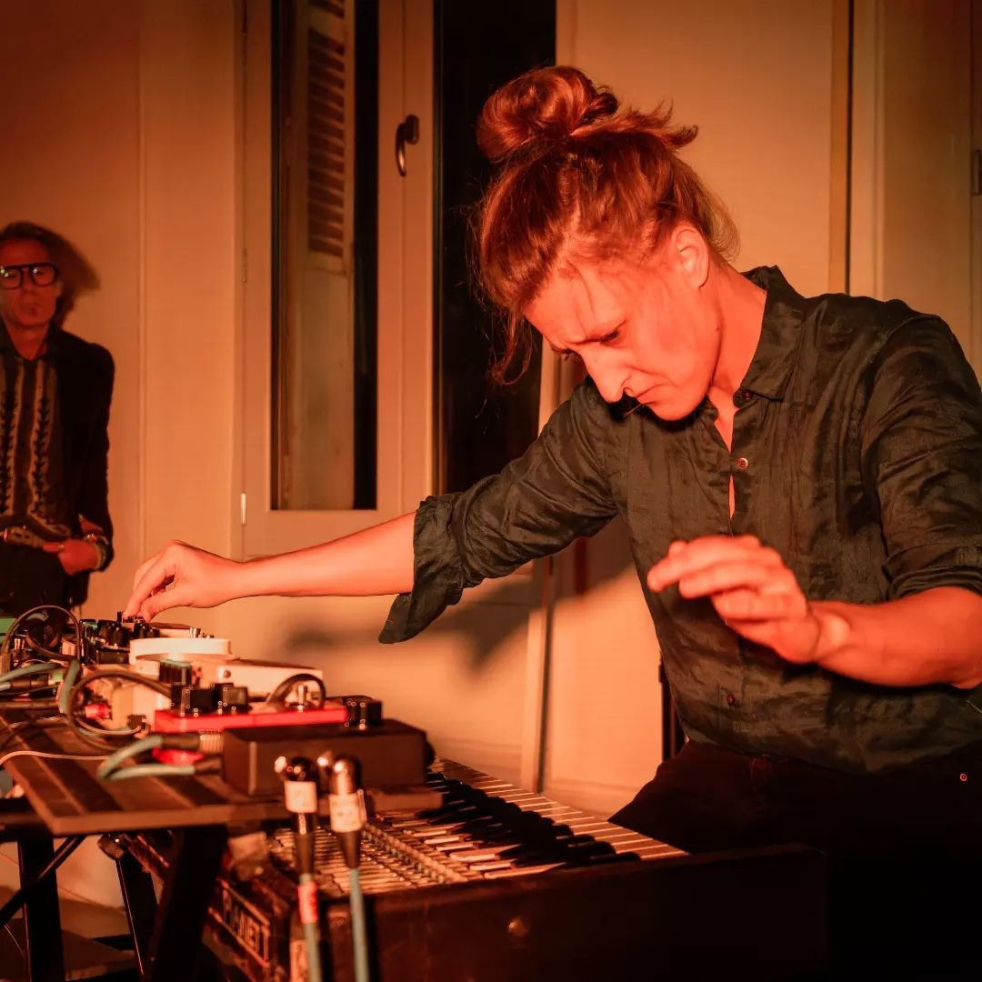 Maria Laurent joue du pianet, un piano électrique dont le son est créé par des tampons en caoutchouc sur des lamelles de métal pincées. Loin de n’en utiliser que les touches, elle considère son instrument comme une palette sonore d’outils multiples dont elle explore tous les contours : impacts, raclements, frottements, grésillements et fantômes. Elle s’installe alors dans une transe electro à la fois organique et minimale.