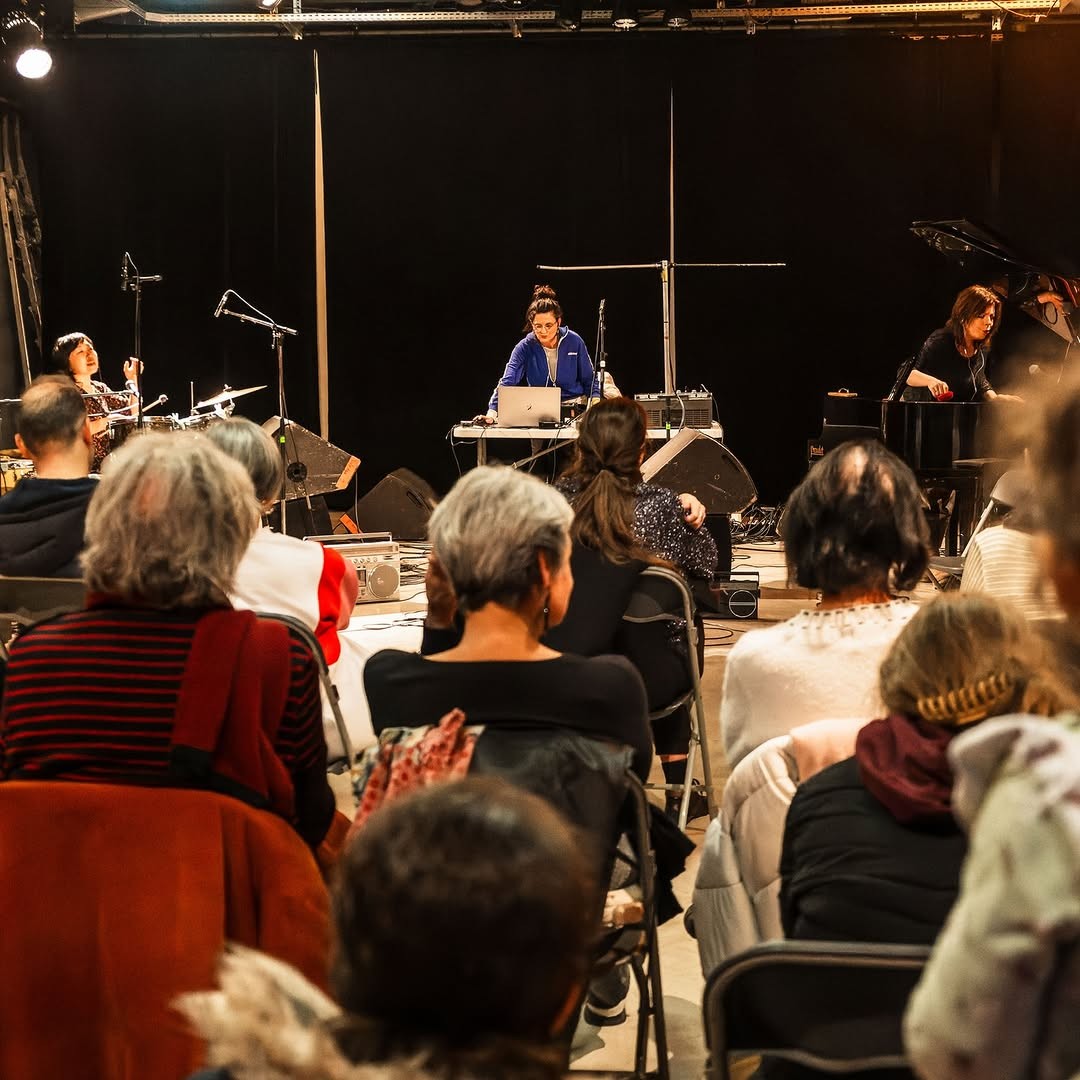 Les Tricoteuses est le projet de ce trio de musique improvisée (piano, percussion, musique électroacoustique live et voix) autour de la thématique des femmes artistes au travail. Partir (en tournée), revenir (en famille) et raconter ces temporalités, ces émotions, à partir d’une matière constituée de témoignages des trois artistes et d’autres femmes, musiciennes, danseuses, comédiennes… sur leur vie d’artistes, de femmes, de mères.