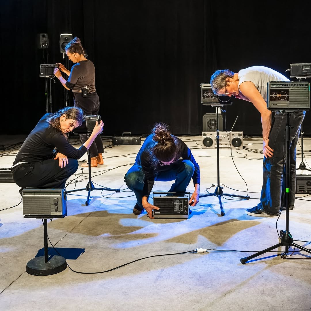 Les Harmoniques du Néon travaillent depuis plusieurs années autour d’un dispositif sonore qui repose, tout ou partie, sur l’objet radio. Installé sur scène en dix ou quarante exemplaires, il devient orchestre à faire sonner, chacun ayant sa propre couleur sonore. Avec Ce qui nous reste, Les Harmoniques du Néon affirment leur désir de poursuivre leur exploration de ce dispositif en convoquant d’un côté une matière instrumentale, et de, l’autre, une présence accrue du corps au plateau. Pour ce faire, Anne-Julie Rollet et Anne-Laure Pigache invitent Carla Pallone, musicienne multi instrumentiste, violoniste et compositrice et Marie Cambois, chorégraphe et interprète, à explorer ces liens entre voix, corps, instruments et radios.