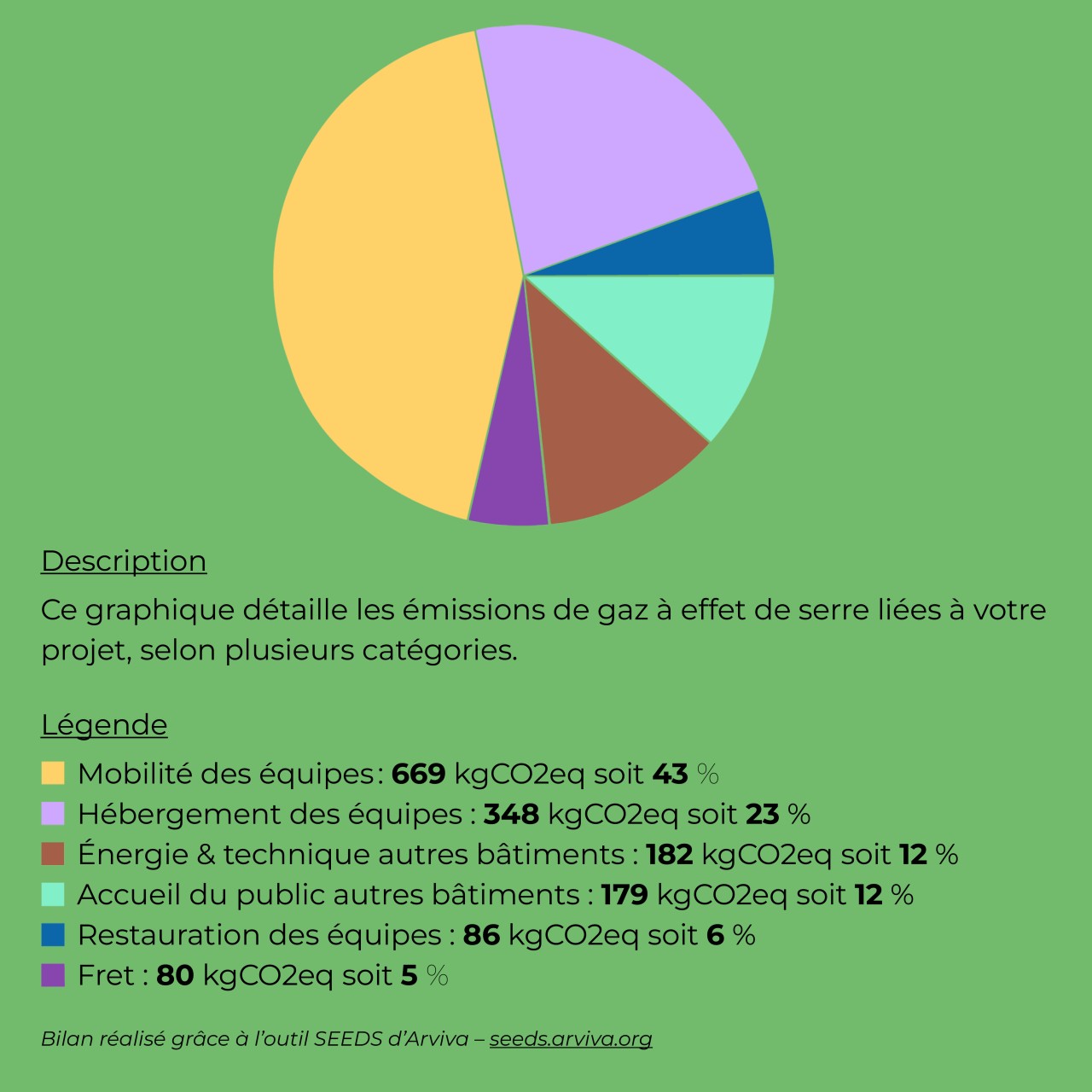 Ce laboratoire à petite échelle, dont les protocoles seraient certainement différents dans des contextes festivaliers accueillant des jauges de public plus importantes, a permis de travailler l’ensemble des points de vigilance, de les mesurer et rendre concret l’impact d’une action sur ces différents postes de dépenses carbone.